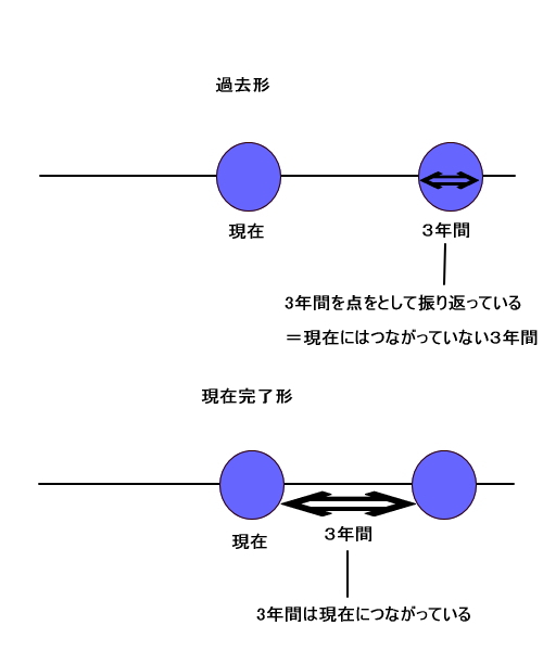 過去形と現在完了形の場合は時間のつながり方が違ってきます。